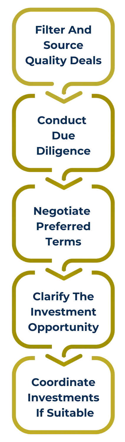We leverage the collective investing power of our clients to negotiate a more advantageous preferred deal terms for our investors so you can get institutional level terms without large institutional capital.