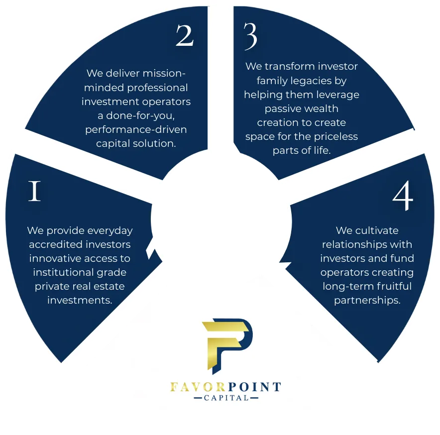 1 Institutional Disclaimer: “Institutional-grade,” “institutional-quality,” and “institutional-mindset” each refer to FavorPoint’s internal 100-plus-point due-diligence process, evaluating dozens of opportunities and presenting only those that meet our internal standards, along with efforts to negotiate preferred investor terms. These steps do not eliminate risk or guarantee performance. All investments involve risk, including possible loss of principal, and are intended for accredited investors only.